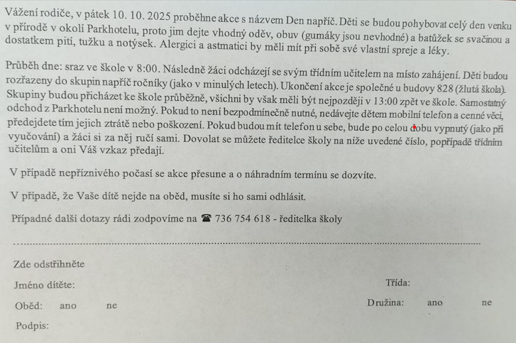 Den napříč se z důvodu špatného počasí přesouvá na čtvrtek 16.10. Děkujeme za pochopení.
