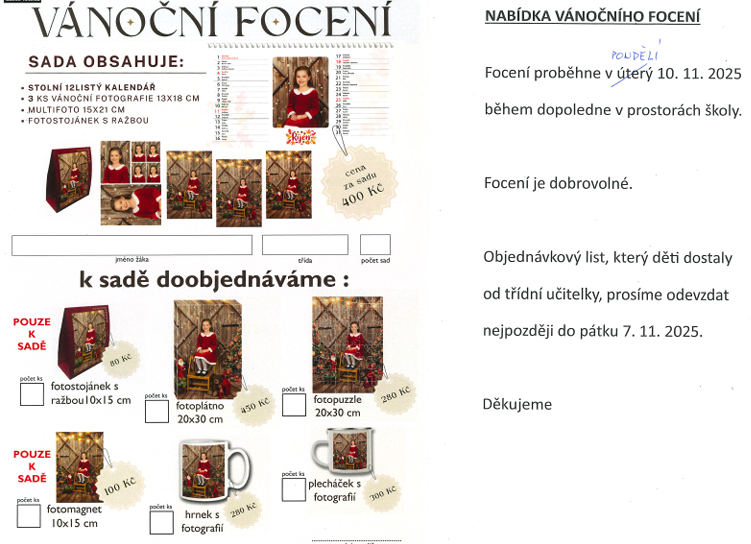 Dne 9.9. proběhne focení prvňáčků. Děti mohou mít s sebou převlečení. Před focením i po focení se budou moci převléknout.