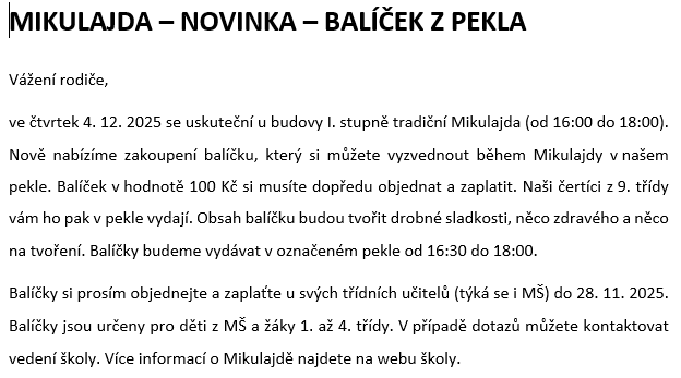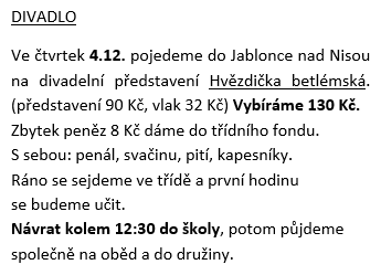se opět v naší třídě. (Prosím, děti s sebou neberte).